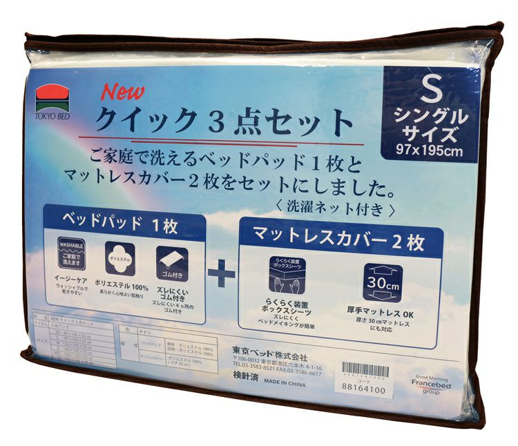 東京ベッド 寝装品3点セット New クイック3点セット | 東京ベッド製 ベッドパッド マットレスカバー シーツ ボックスシーツ 3点セット シングル セミダブル ダブル ワイドダブル クイーン セミシングル 安い