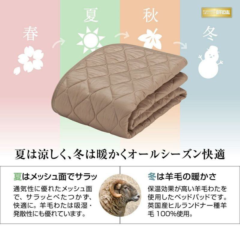 フランスベッド ベッドパッド クイーン 羊毛メッシュベッドパッド | 正規品 フランスベッド製 ベッドパット ベットパット 敷パッド 敷きパッド 敷きパット ウール 羊毛 オールシーズン 洗える クイーンベッドパッド