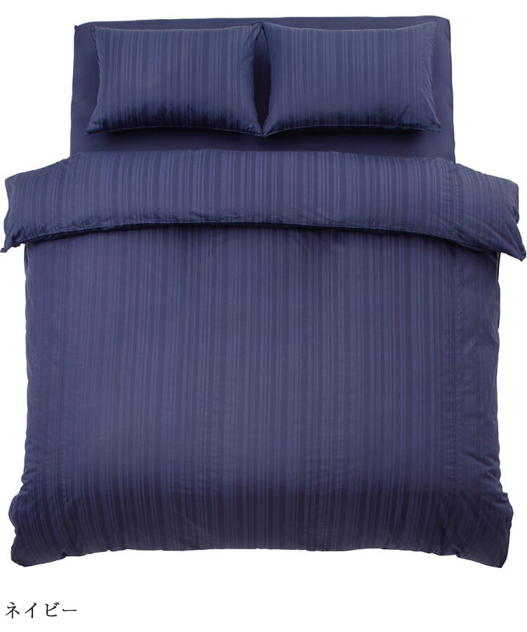 ランダムに並んだストライプ模様の光沢が サテン生地の上品さを一層際立たせる ドリームベッド 定番掛け布団カバー