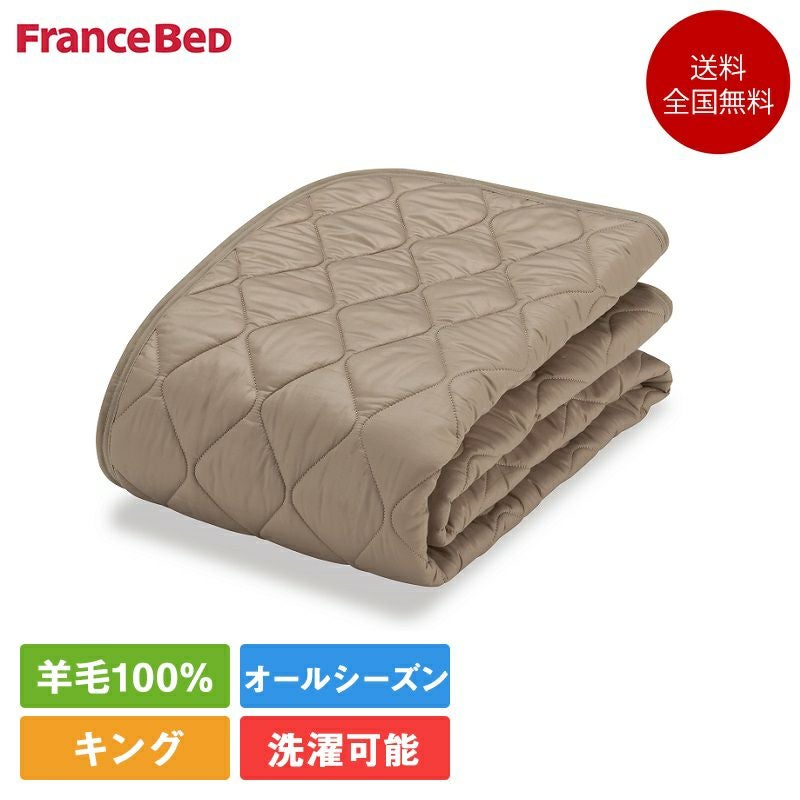 フランスベッド 羊毛メッシュパッド・ライン&アースN 寝装品3点セット キング サイズ 195cm×195cm(ベッドパッド1枚・マットレスカバー2枚) | 正規品 ベッドパッド キング 敷きパッド ウール 羊毛 マットレスカバー ボックスシーツ 送料無料 寝具 洗える