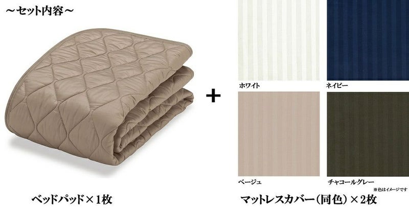 商品はベッドパッド1枚、マットレスカバー2枚となります。
