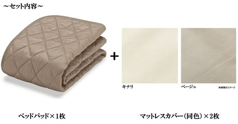 商品はベッドパッド1枚、マットレスカバー2枚となります。