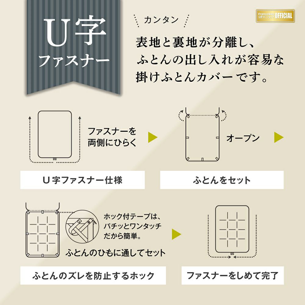 他の画像を見る ロングセラーモデル!美しい光沢と 高級感ある なめらかな肌触り!フランスベッド 高級掛け布団カバー フランスベッド 掛け布団カバー シングル エッフェプレミアム | 正規品 フランスベッド製 掛けカバー 掛けふとんカバー日本製 国産 綿100% 洗える 高級 ホワイト 白 ピンク グレージュ ブラウン ブルー グリーン 150×210 3%オフ対象商品 販売価格 ¥ 15,800 税込 詳細を見る お気に入りに登録する