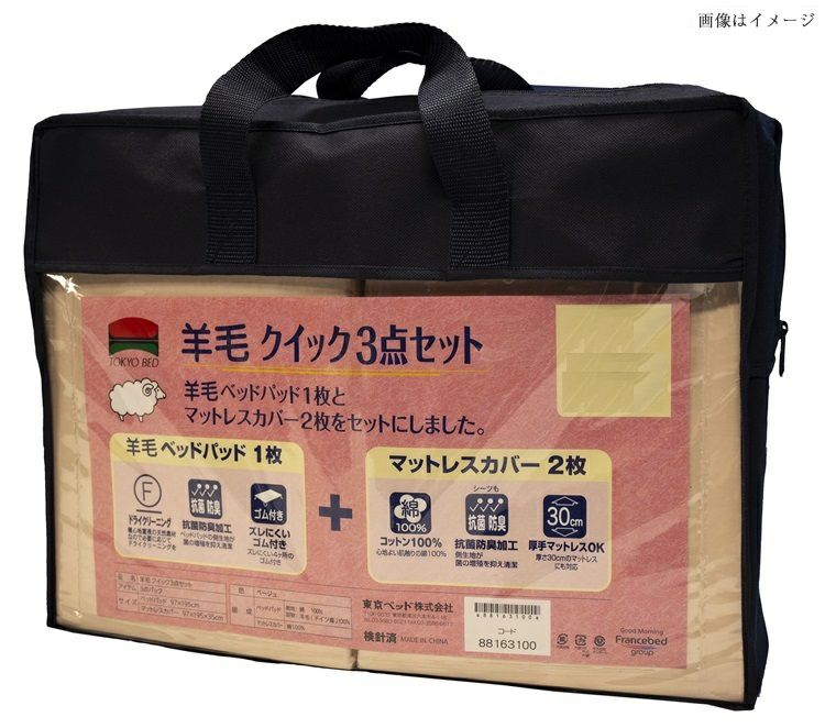 他の画像を見る 東京ベッド ベッドパッドとシーツのお買い得3点セット | ベッドパッド マットレスカバー 東京ベッド 寝装品3点セット ウォッシャブル羊毛クイック3点セット | 東京ベッド製 ベッドパッド マットレスカバー シーツ ボックスシーツ 3点セット 羊毛ベッドパッド ウールベッドパッド シングル ダブル ワイドダブル 3%オフ対象商品 販売価格 ¥ 19,580 税込 〜 販売価格 ¥ 税込 詳細を見る お気に入りに登録する