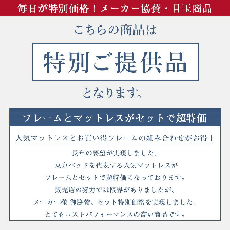 他の画像を見る 抜群のコスパ フランスベッド 東京ベッド ベッド | フランスベッド製 東京ベッド製 ベッド マットレス付き ベット マットレスセット 脚付き 日本製 コンパクト 【セット特価】ベッド ワイドダブル セレンテF 脚付き 布張り床板(フレーム) MW-200α ハード(マットレス) | 正規品 フランスベッド 東京ベッド マットレス付き マットレスセット ベット 日本製 国産 mw200かたい かため 腰痛 マルチラスハード 3%オフ対象商品 販売価格 ¥ 188,800 税込 詳細を見る お気に入りに登録する