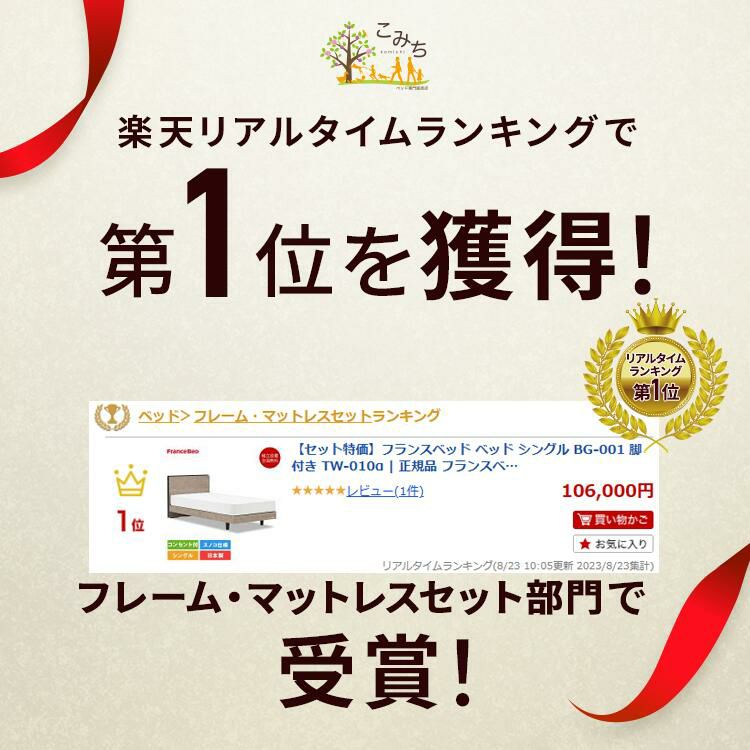 他の画像を見る コスパ抜群 フランスベッド 跳ね上げ ベッド | フランスベッド製 ベッド マットレス付き マットレスセット ベッドセット マットレス付き コンセント おしゃれ 収納 【セット特価】フランスベッド ベッド シングル BG-002 跳ね上げ式収納 高さ30cm TW-010α | 正規品 フランスベッド製 シングルベッド マットレス付き マットレスセット ベッドセット マットレス付 コンセント付き おしゃれ 収納 大容量 大収納 跳ね上げ bg-002 tw-010α 3%オフ対象商品 販売価格 ¥ 215,800 税込 詳細を見る お気に入りに登録する