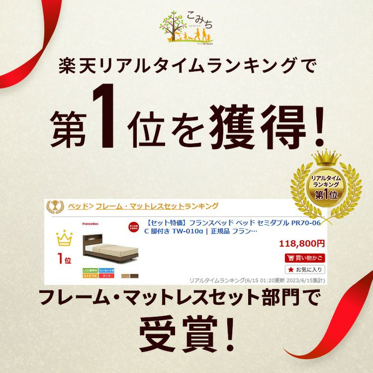 他の画像を見る コスパ抜群 フランスベッド ベッド | ベッド ベット マットレス付き マットレスセット 70周年 脚付き スノコ すのこ すのこベッド 宮付き 宮 棚 コンセント付き 照明付き 【セット特価】フランスベッド ベッド セミダブル PR70-06C 脚付き TW-100α | 正規品 フランスベッド製 セミダブルベッド マットレス付き マットレスセット ベッドセット マットレス付 ベット 照明付き 宮付き 棚付き コンセント付き コンパクト すのこ スノコ 日本製 3%オフ対象商品 販売価格 ¥ 145,800 税込 詳細を見る お気に入りに登録する