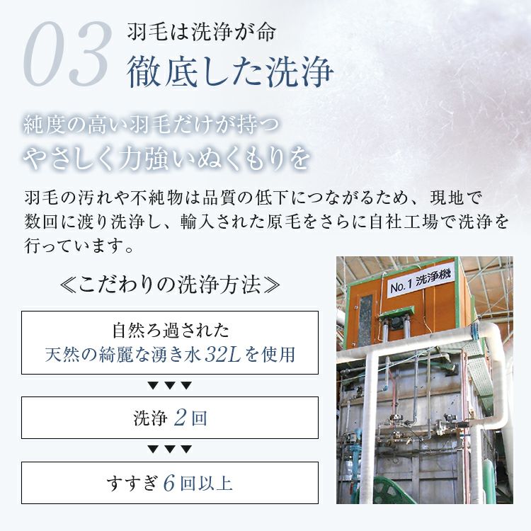 一貫生産、厳選された良質な羽毛、