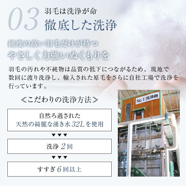 一貫生産、厳選された良質な羽毛、