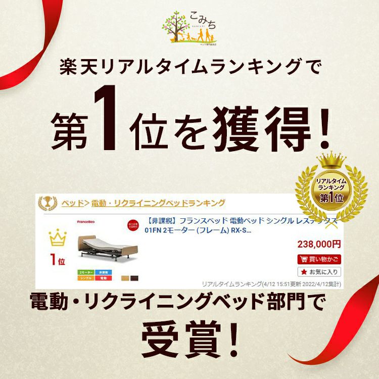 他の画像を見る 快適な使い心地 フランスベッド 電動ベッド 2モーター | レステックス 電動ベット マットレス付き 電動リクライニング 電動 リクライニング 逆流性食道炎 介護 介護ベッド 腰痛 【非課税】フランスベッド 電動ベッド シングル レステックス01F 2モーター マイクロRX-DLX SR-300ウッド(サイドレール1本) | 正規品 フランスベッド製 電動リクライニング 電動 リクライニング ベット 3%オフ対象商品 販売価格 ¥ 251,000 税込 詳細を見る お気に入りに登録する