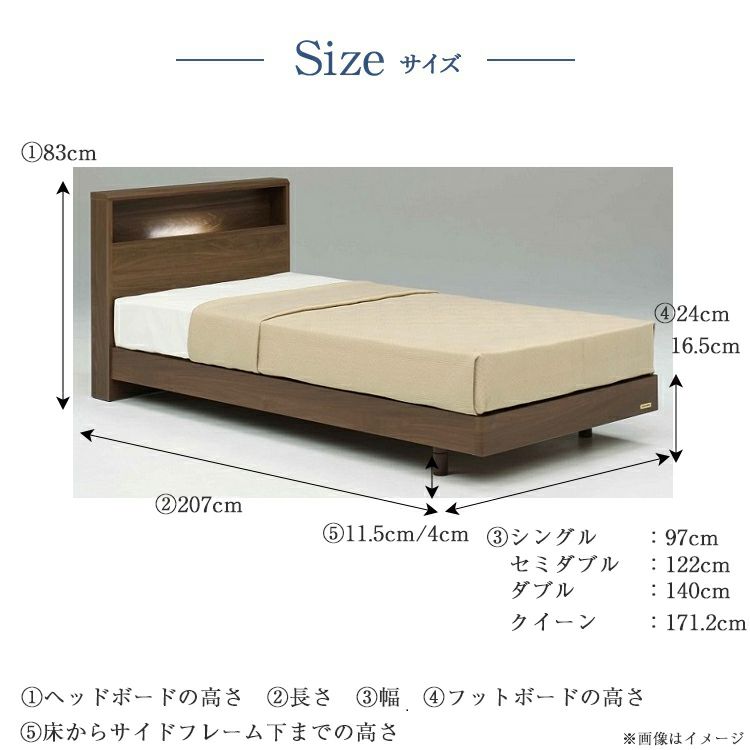 | サイズ(フレーム外寸) | 横幅122cm×長さ207cm×高さ83cm×フレームの高さ24cm/16.5cm 床からサイドフレーム下までの寸法11.5cm/4cm |