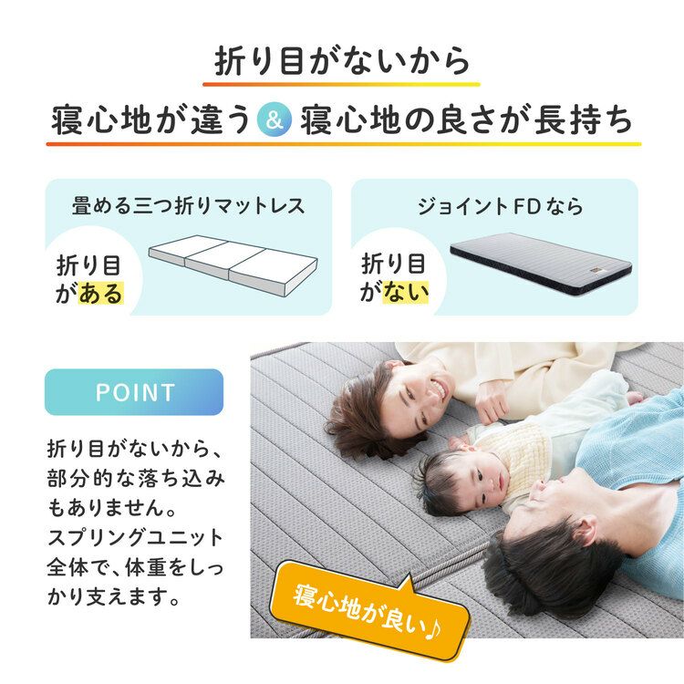 他の画像を見る 家族みんなで眠れる、くっつけて使える折りたたみマットレス 新作 フランスベッド マットレス FD-W02 JT | 正規品 フォールドエアー 折りたたみマットレス ファミリーマットレス ファミリーサイズ マットレス くっつける シングル セミダブル セミシングル 圧縮梱包 日本製 国産 5%オフ対象商品 販売価格 ¥ 49,000 税込 〜 販売価格 ¥ 税込 詳細を見る お気に入りに登録する