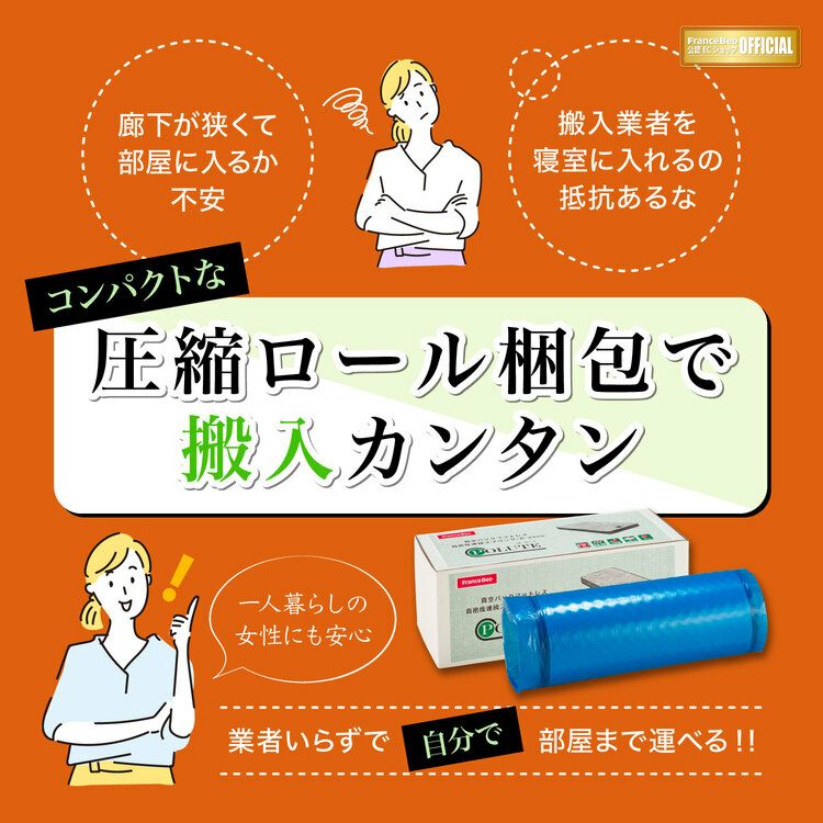他の画像を見る 階段が狭い、エレベーターが小さい等、搬入難しいに特にオススメ!圧縮梱包だから搬入もしやすい!腰をしっかりと支えてくれるスプリングマットレス フランスベッド マットレス ポルテ R-ZERO-400 | 正規品 フランスベッド製 ポルテ POLUTE 圧縮梱包 ベッド マットレス ベッドマットレス シングル セミダブル ダブル シングルベッド セミダブルベッド ダブルベッド 抗菌 防臭 防ダニ シングルマットレス ダブルマットレス 5%オフ対象商品 販売価格 ¥ 59,800 税込 〜 販売価格 ¥ 税込 詳細を見る お気に入りに登録する
