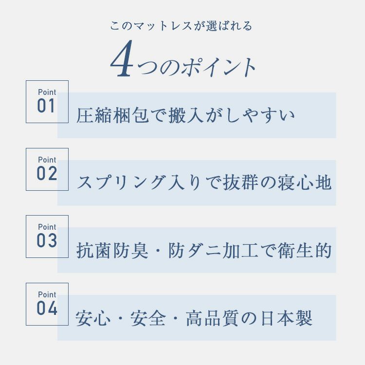 階段が狭い、エレベーターが小さい等、搬入難しいに特にオススメ!圧縮梱包だから搬入もしやすい!腰をしっかりと支えてくれるスプリングマットレス