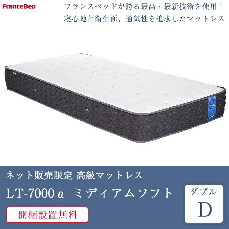 フランスベッド マットレス ダブル LT-7000α ミディアムソフト 140cm×195cm×28cm | 正規品 ベッド マット LT LT7000α LT7000 LT-7000 生地違い 除菌 キュリエスエージー アグリーザ ブレスエアーエクストラシルキー やわらかい やわらかめ ソフト ダブルサイズ