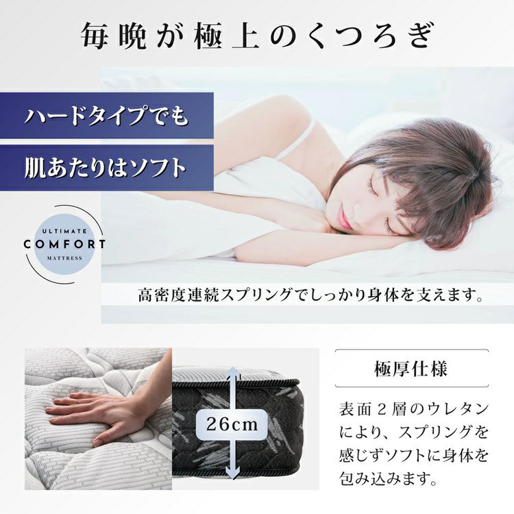 幅 シングル 97cm/セミダブル 122cm/ダブル 140cm×長さ 195cm×厚さ26cm