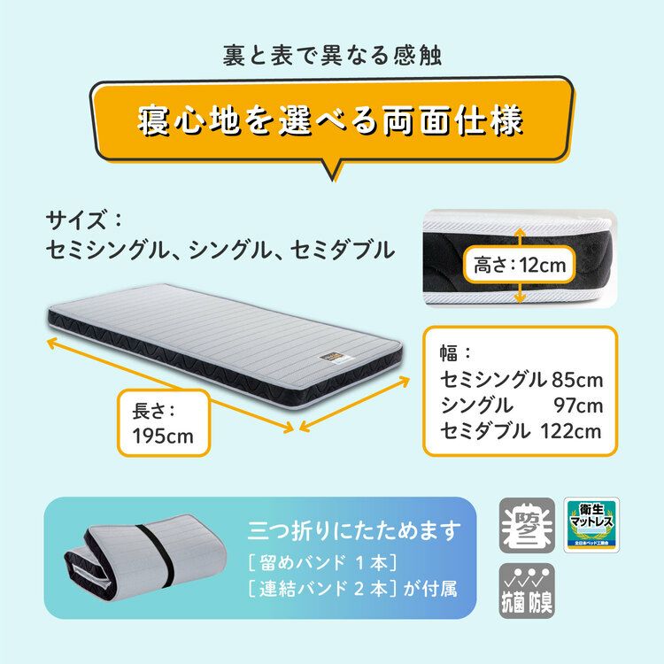 他の画像を見る 階段が狭い、エレベーターが小さい等、搬入難しいに特にオススメ!圧縮梱包だから搬入もしやすい!腰をしっかりと支えてくれるスプリングマットレス フランスベッド マットレス ポルテ R-ZERO-400 | 正規品 フランスベッド製 ポルテ POLUTE 圧縮梱包 ベッド マットレス ベッドマットレス シングル セミダブル ダブル シングルベッド セミダブルベッド ダブルベッド 抗菌 防臭 防ダニ シングルマットレス ダブルマットレス 5%オフ対象商品 販売価格 ¥ 59,800 税込 〜 販売価格 ¥ 税込 詳細を見る お気に入りに登録する
