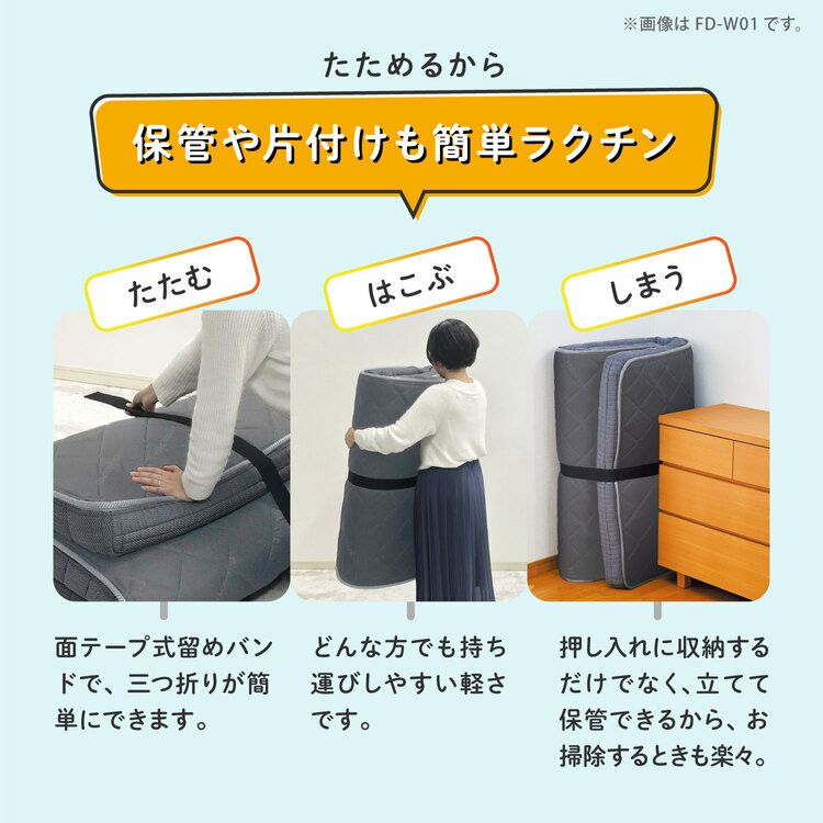 他の画像を見る 家族みんなで眠れる、くっつけて使える折りたたみマットレス 新作 フランスベッド マットレス FD-W02 JT | 正規品 フォールドエアー 折りたたみマットレス ファミリーマットレス ファミリーサイズ マットレス くっつける シングル セミダブル セミシングル 圧縮梱包 日本製 国産 5%オフ対象商品 販売価格 ¥ 49,000 税込 〜 販売価格 ¥ 税込 詳細を見る お気に入りに登録する