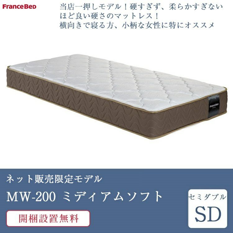 他の画像を見る 硬すぎず柔らかすぎず、安定感のある寝心地!コスパ抜群、フランスベッド 限定お買い得マットレス フランスベッド マットレス セミシングル MW-200αミディアムソフト | 正規品 ベッド ベッドマット セミシングルマットレス セミシングルベッドマット セミシングルマット セミシングルサイズ ミディアムソフト 羊毛 日本製 高密度連続スプリング SS スモールシングル 3%オフ対象商品 販売価格 ¥ 82,800 税込 詳細を見る お気に入りに登録する