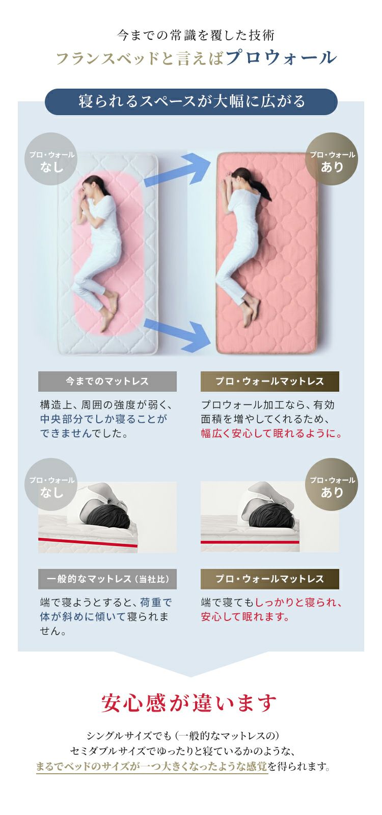 他の画像を見る 抜群の寝心地を誇るフランスベッド製マットレス | プロウォール ベッド ベッドマット 硬め 腰痛 固め lt-5500 ライフトリートメント キュリエスag キュリエスエージー フランスベッド マットレス セミダブル LT-5500PW ハード 122cm×195cm×28cm | 正規品 フランスベッド製 15%オフ対象商品 販売価格 ¥ 223,300 税込 詳細を見る お気に入りに登録する