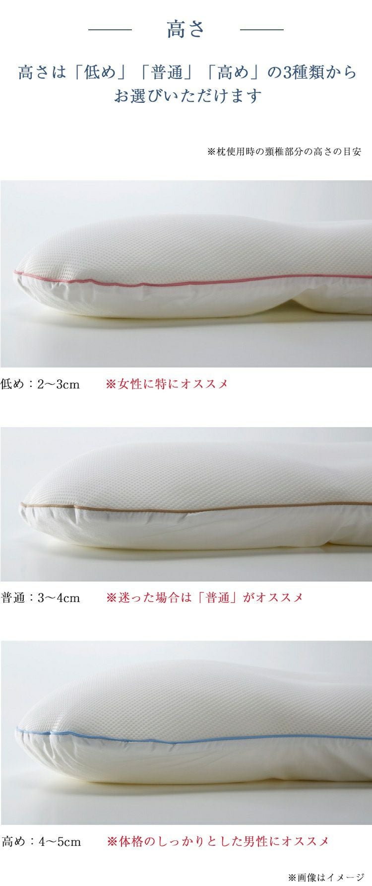73cmx37cm/高さ(首元) 低め2-3cm・ふつう3-4cm・高め4-5cm