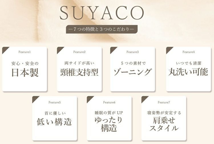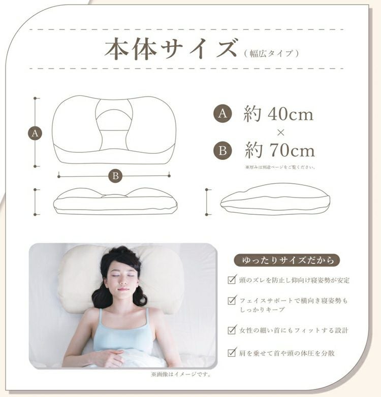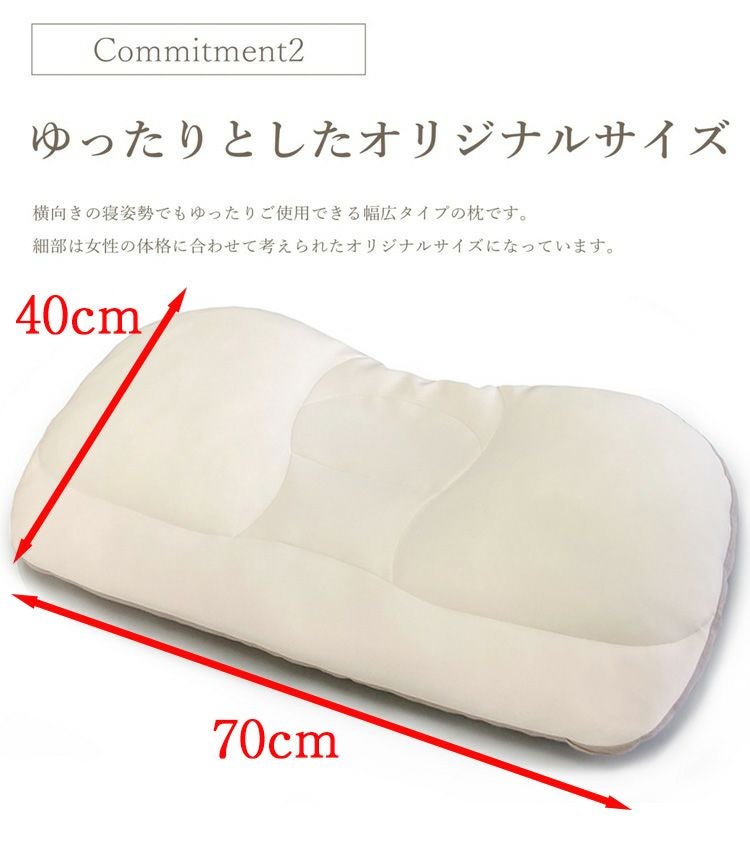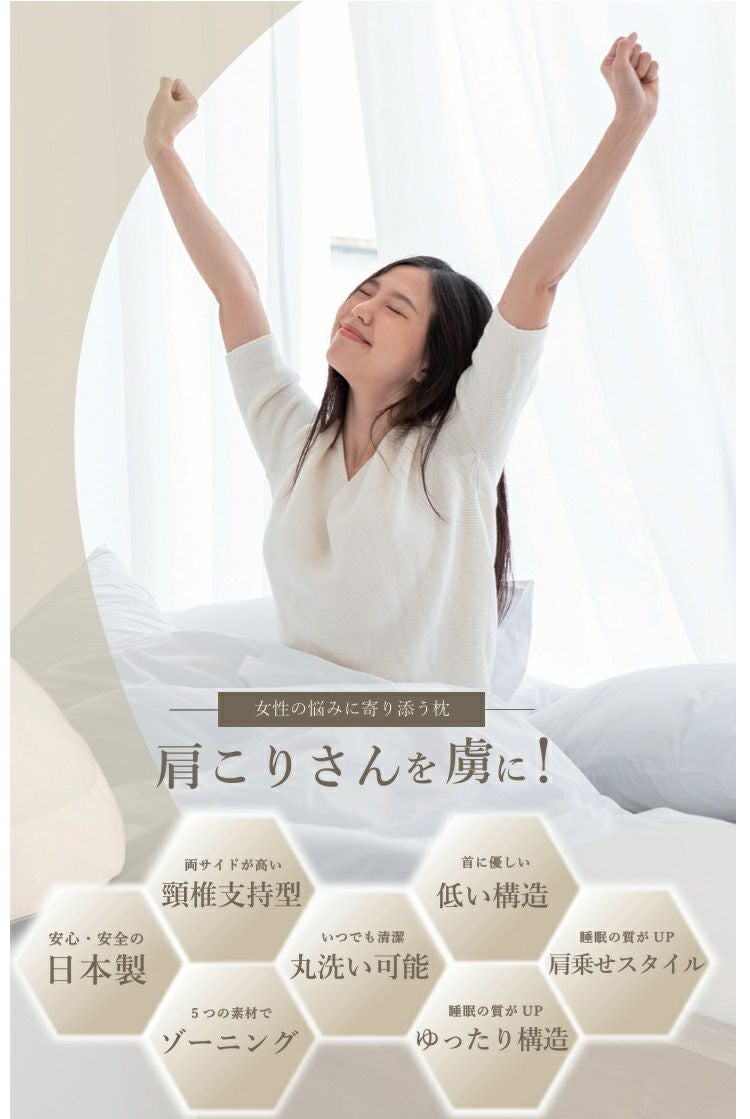肩こりに悩む女性向け枕として開発!女性ならではの骨格に合わせた低め、幅広、高さ調節可能、丸洗い可能な国産安眠枕