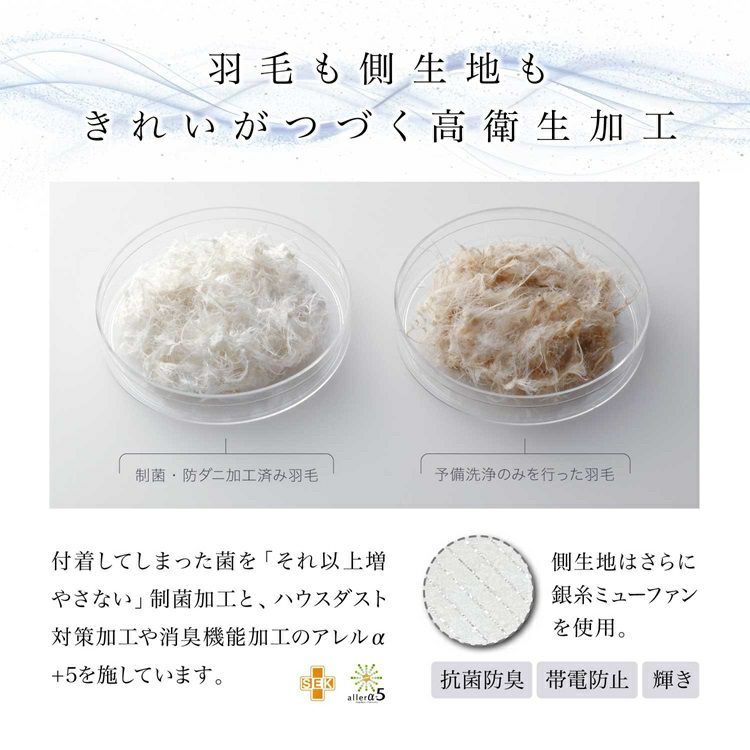 上層:ポーランド産ホワイトグースダウン95%、フェザー5%