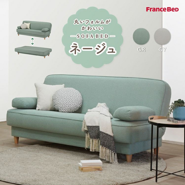 新作 フランスベッド ソファーベッド ネージュ | 正規品 フランスベッド製 ソファ ソファー ソファベッド 寝心地 良い ソファーベッド 収納付き かわいい 可愛い おしゃれ 3人掛け クッション付き グリーン グレー