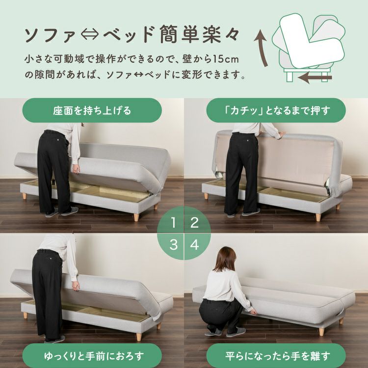 簡単操作でベッド⇔ソファーベッドに