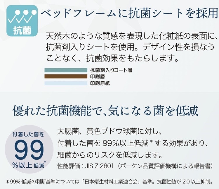 抗菌剤入りシートを使用。抗菌シートが細菌の増殖を抑制します。