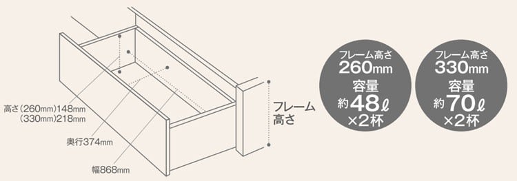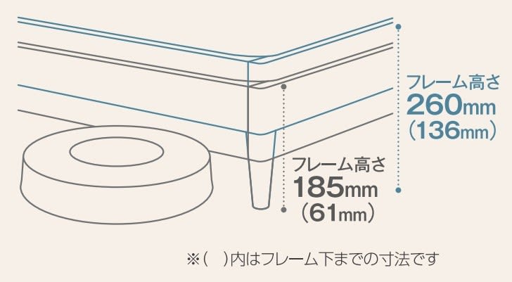 脚付き(ロングサイズ以外)、引き出し付きタイプには