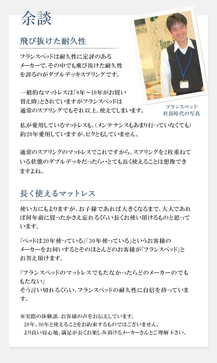 圧倒的な耐久性、腰を支える力を誇るマットレスです。