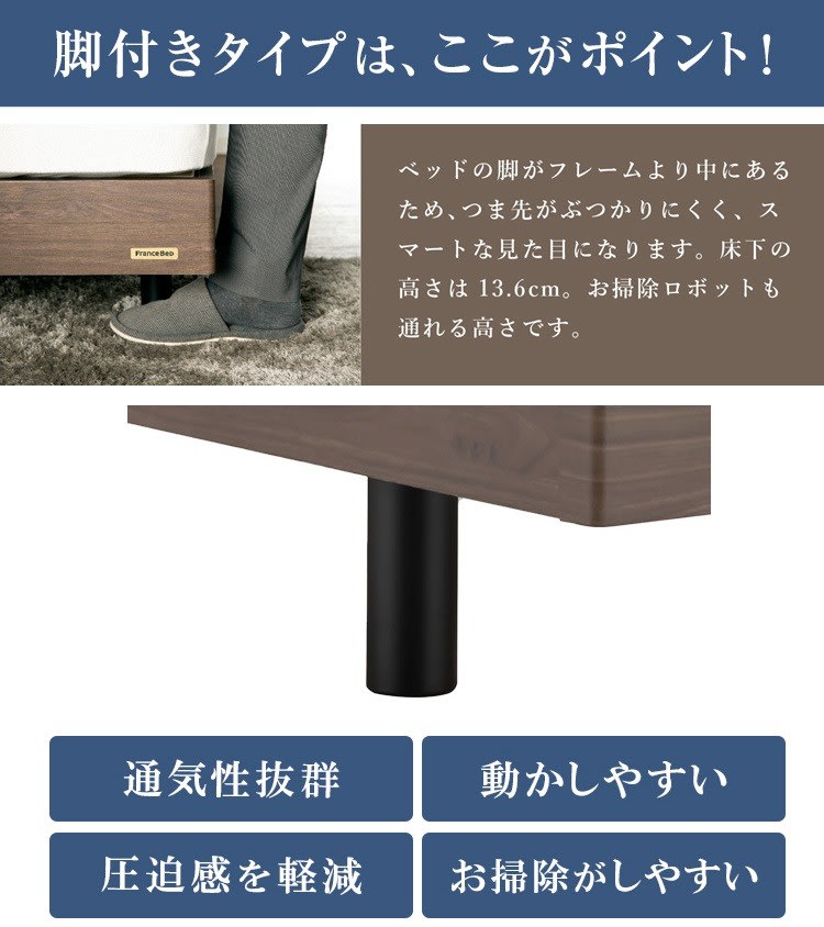 脚付きフレームと相性が抜群、通気性がより良くなります。