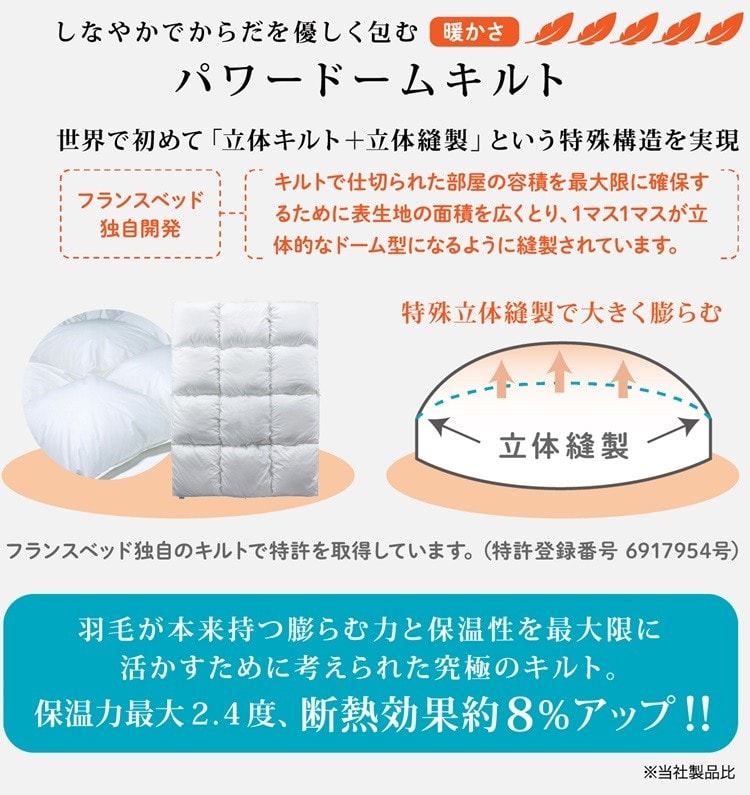 まるで温かい空気に包まれて眠るかのような感覚を得られる羽毛布団となります。