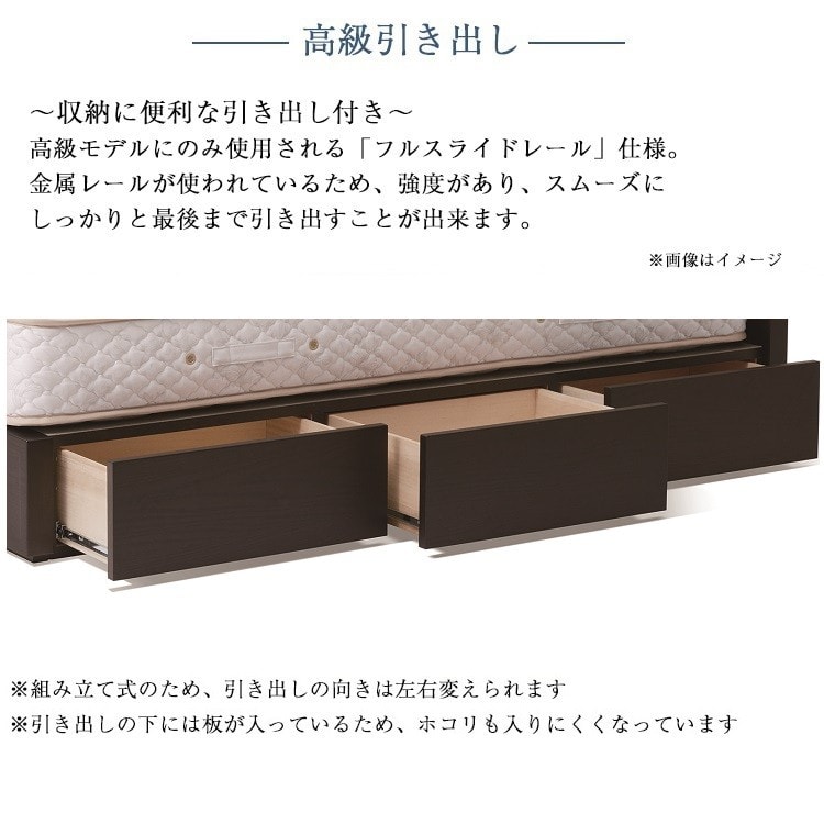 下着やシーツ等の収納に便利な引き出し付きタイプです。