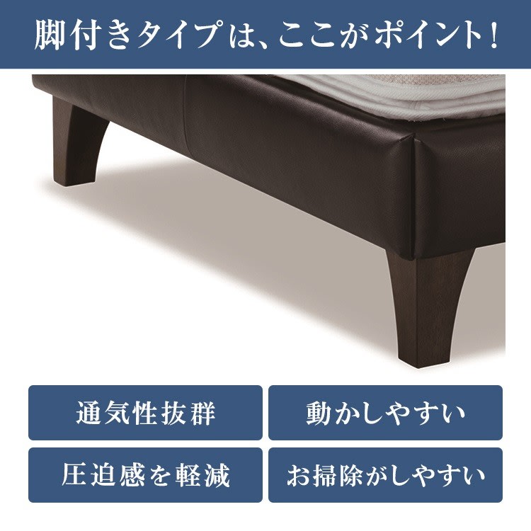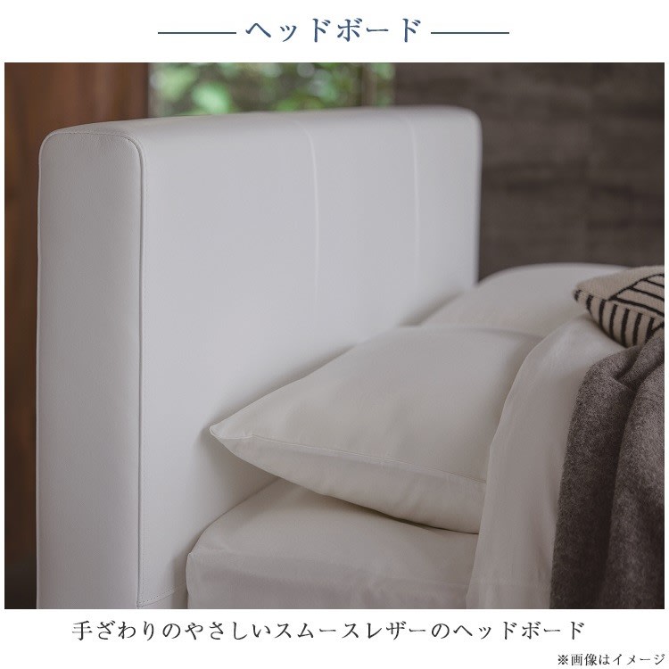 素材 :ヘッドボード張地:牛本革(一部合成皮革) フレーム張地:合成皮革 脚主材:ラバーウッド材
