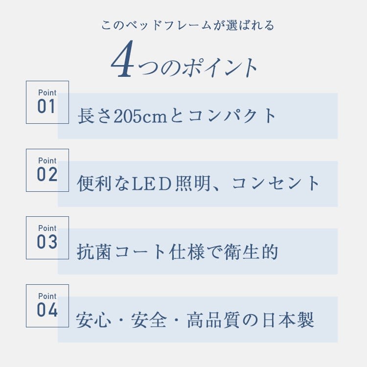 長さ 205cm×ヘッドボードの高さ 82cm×マットレスを乗せるところまでの高さ 23cm