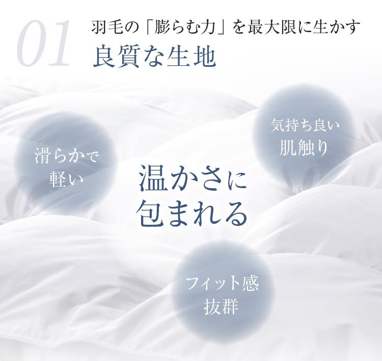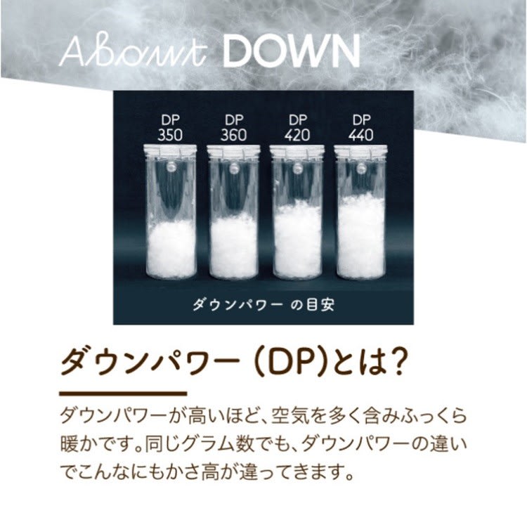 詰め物 :ホワイトグースダウン95%、フェザー5%