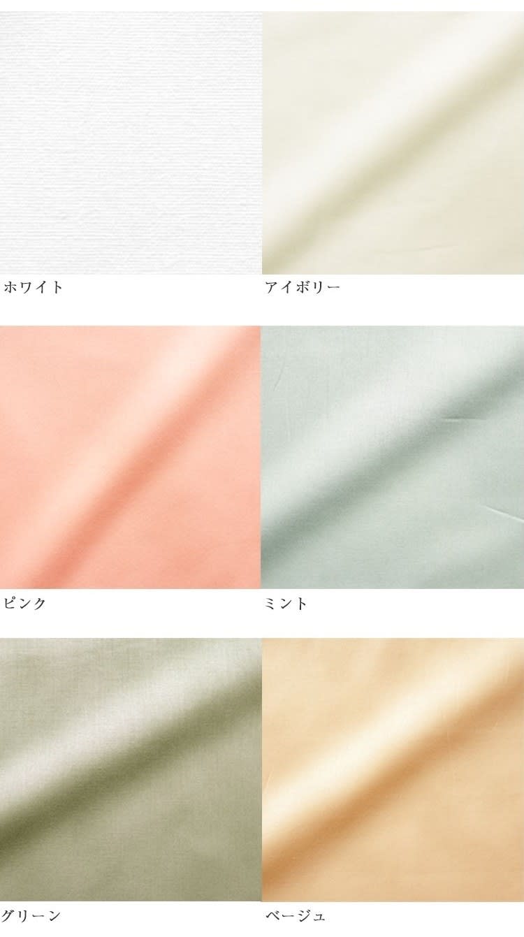 カラー :ホワイト、アイボリー、ピンク、ミント、グリーン、ベージュ、ブラウン、カフェオレ、ネイビー、グレー