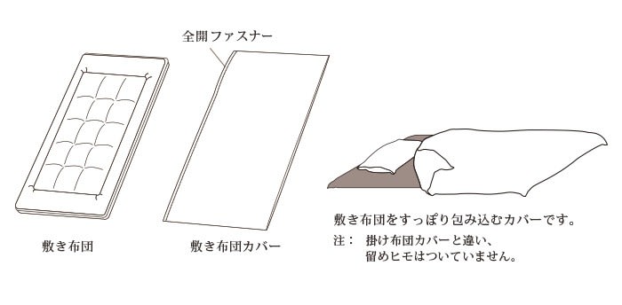 シングル:150cm×210cm/セミダブル:170cm×210cm/ダブル:190cm×210cm/クイーン:210cm×210cm/キング:230cm×210cm
