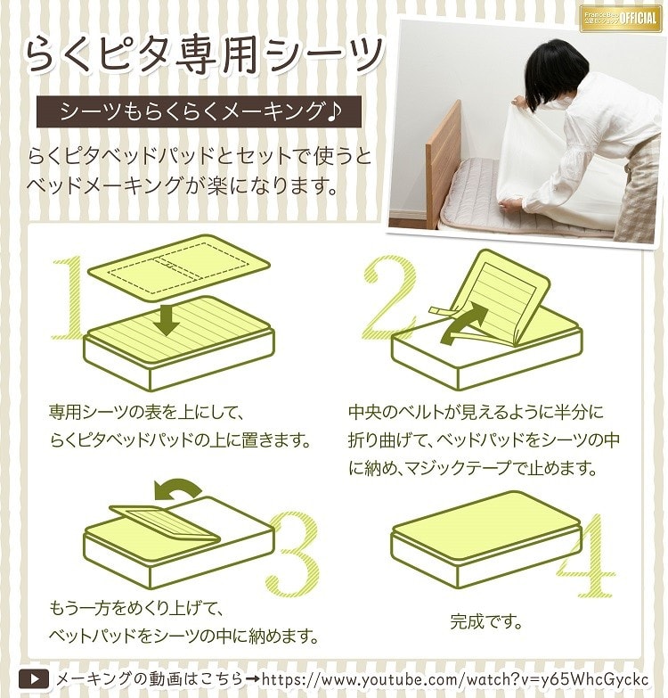 らくピタ ラクーン羊毛パッドには専用シーツがございます。(別売)