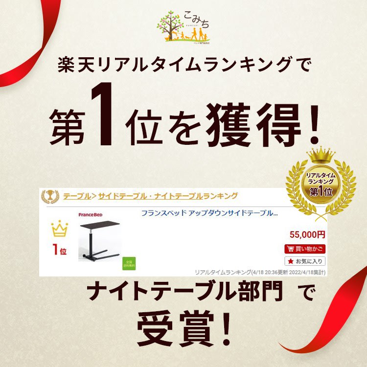 Home / ランキング受賞 / フランスベッド アップダウンサイドテーブル 楽天市場 ランキング1位 受賞!