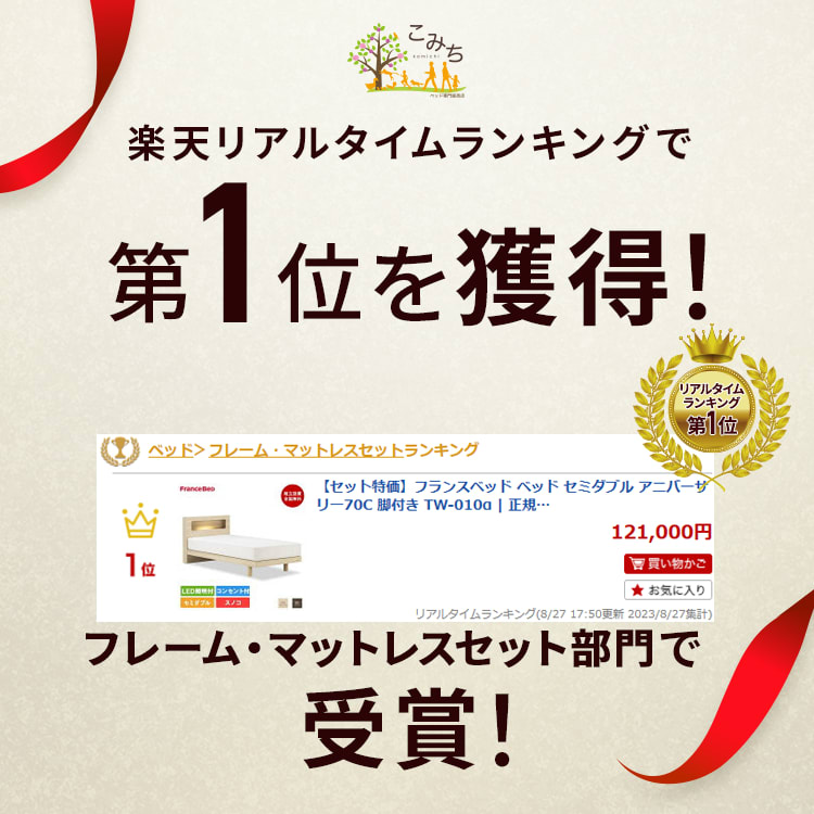 Home / ランキング受賞 / フランスベッド アニバーサリー70C TW-010α 楽天市場 ランキング1位 受賞!| フランスベッド ベッド おすすめ ベッド選び ベッド選び方 マットレス選び