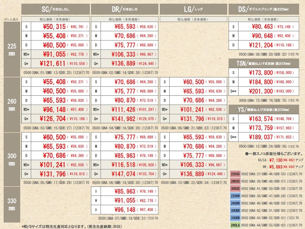 ※スノコはオプションで追加料金がかかります