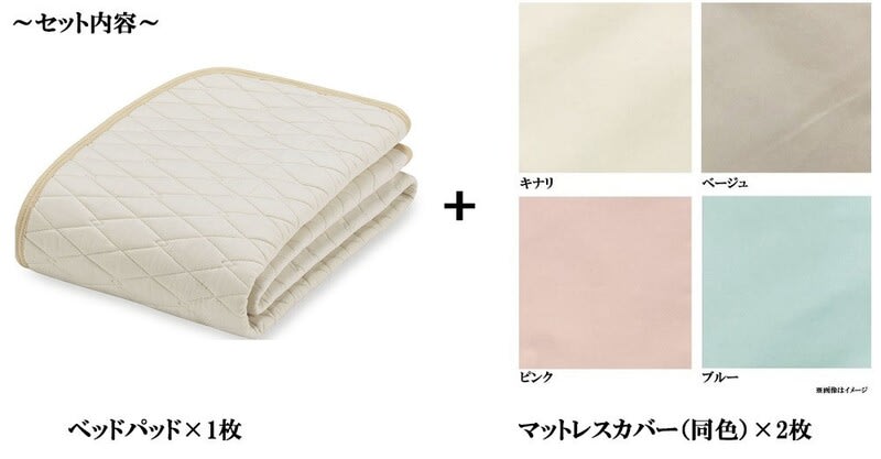 セット内容 ベッドパッド×1枚/マットレスカバー×2枚(同色)