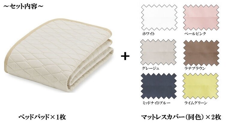 セット内容 ベッドパッド×1枚/マットレスカバー×2枚(同色)