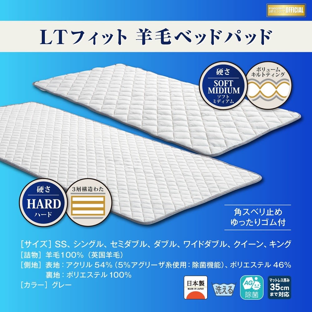 ⇒フランスベッド ベッドパッド LTフィット 羊毛ベッドパッド