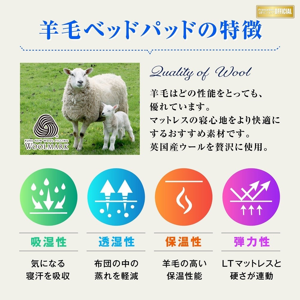 ~フランスベッド LTフィット 羊毛ベッドパッド~