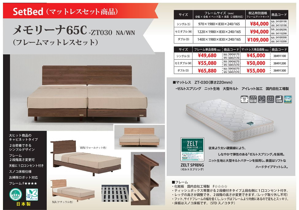 2017年新作お買い得マットレス「ZT-030」をセットにし、