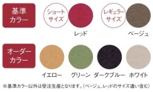 ショートサイズのベージュ、及びレギュラーサイズの赤、